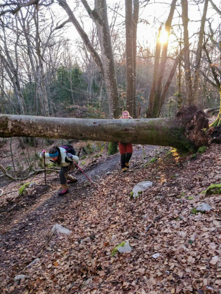 Reprenez votre souffle, les choses sérieuses vont bientôt commencer ! Se présentent donc à vous deux mains courantes l’une après l’autre qui nécessitent une attention particulière notamment en cas de chute de neige récente. Un terrible accident est survenu à cet endroit deux ans auparavant pour un chien de grande taille – + de 50kg – ayant chuté au niveau de la première main courante, il en est malheureusement décédé. Dès lors, nous vous conseillons vivement d’attacher vos chiens pour ces deux passages, surtout s’ils n’ont pas le pied aguerri.