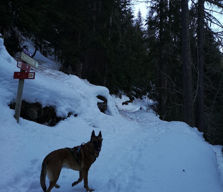 On va partir à gauche en suivant les indications des panneaux jaunes qui suggèrent une montée en 2H pour notre objectif par le biais d’un sentier qui serpente dans le vallon, parfois sous les arbres, de manière soutenue.