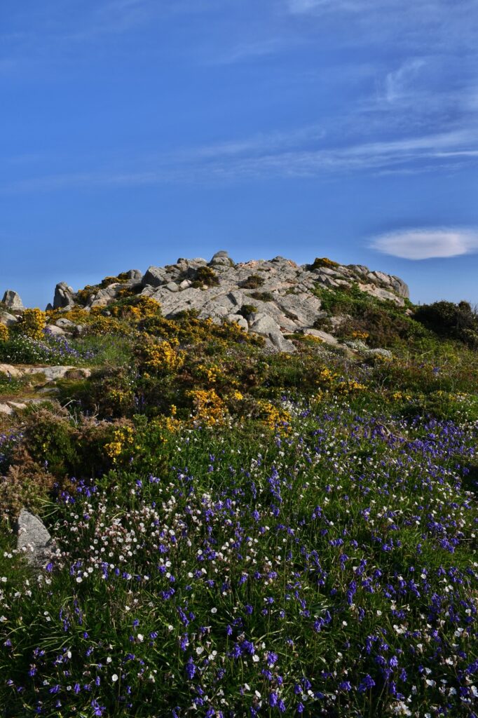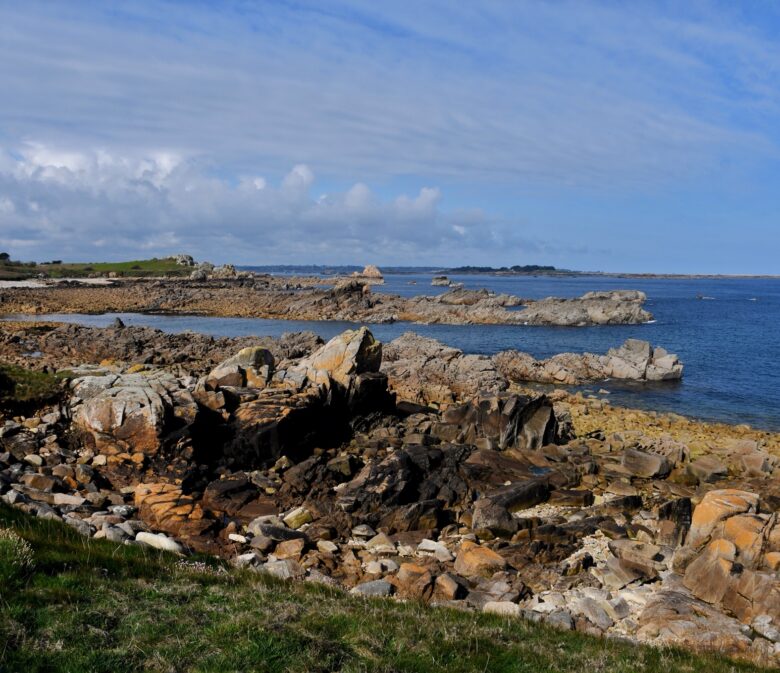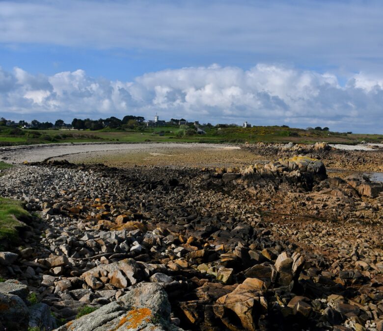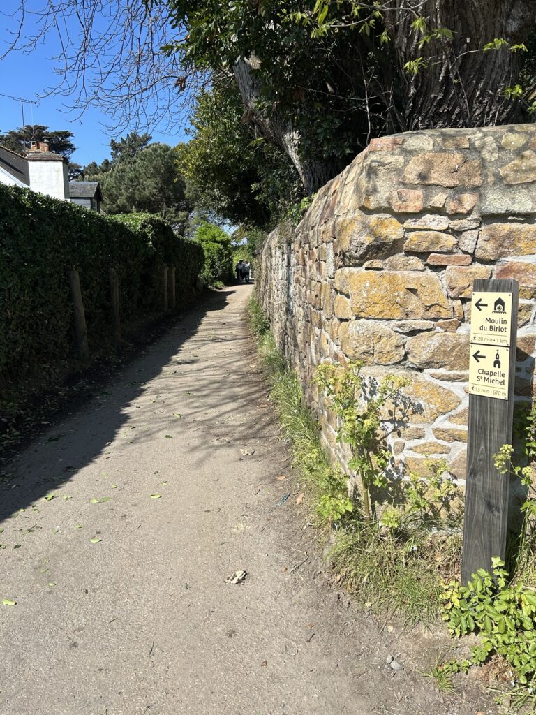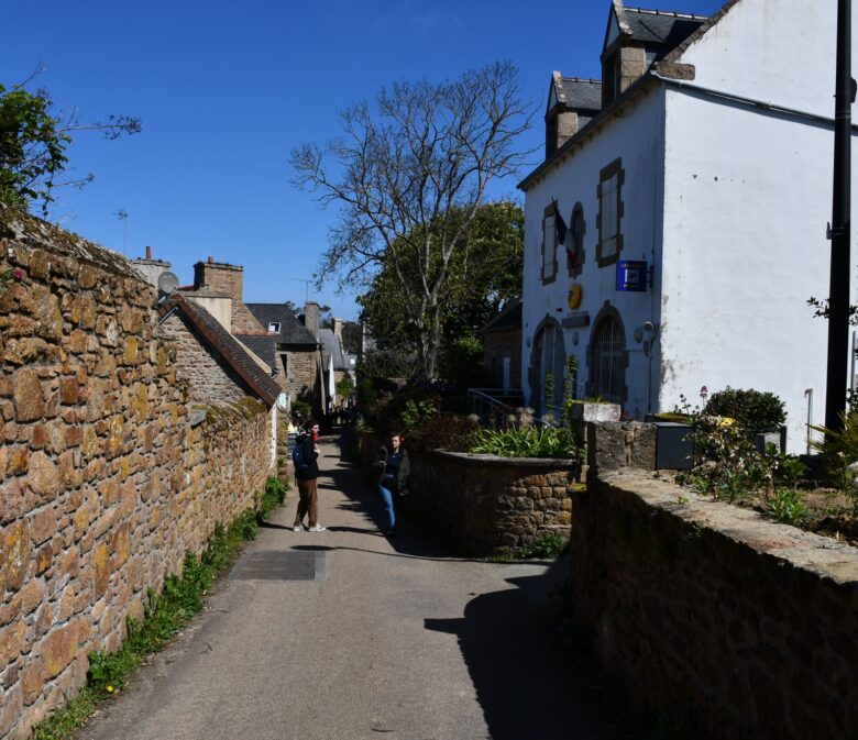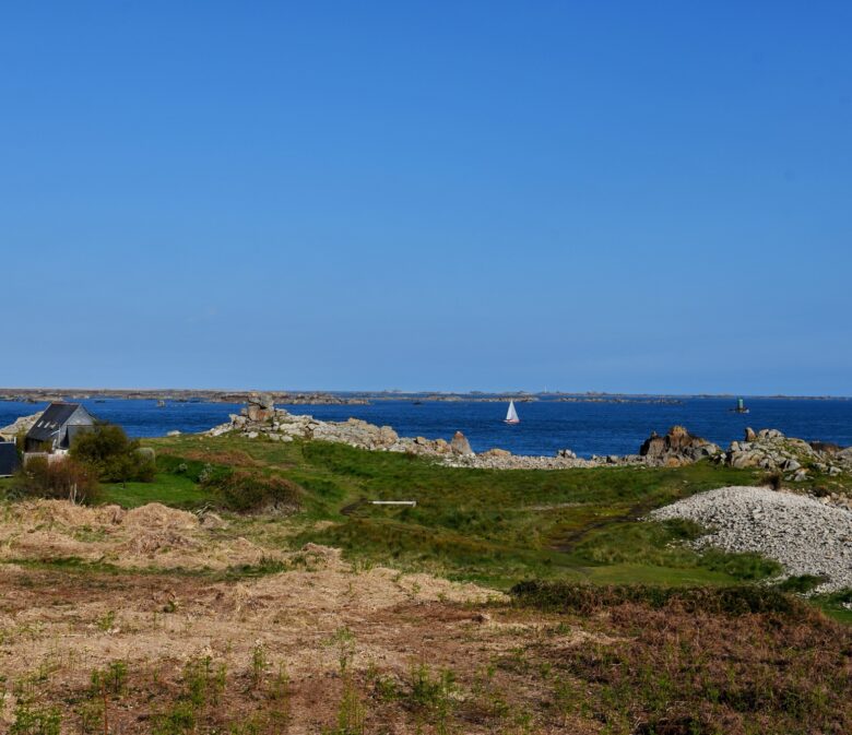 Une fois sur l’île, on va remonter la rue du port pour prendre en face en direction de Crech Kerrio pour rejoindre la côte et longer la mer. On passe vers le cimetière en laissant le Bourg sur notre gauche – que l’on visitera à la fin – pour continuer vers le Gardenno autour duquel on fera une boucle avant de traverser le Pont Ar Prat.