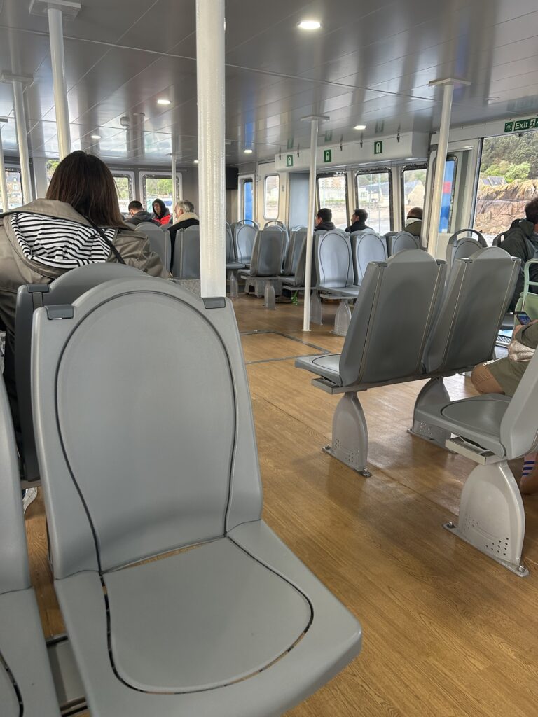 La traversée est relativement rapide et on vous conseille de prendre la première navette si vous voulez avoir quelques heures de tranquillité devant vous avant la cohue : nous serons les seuls touristes dans le bateau, les autres passagers étant des ouvriers partant au travail.