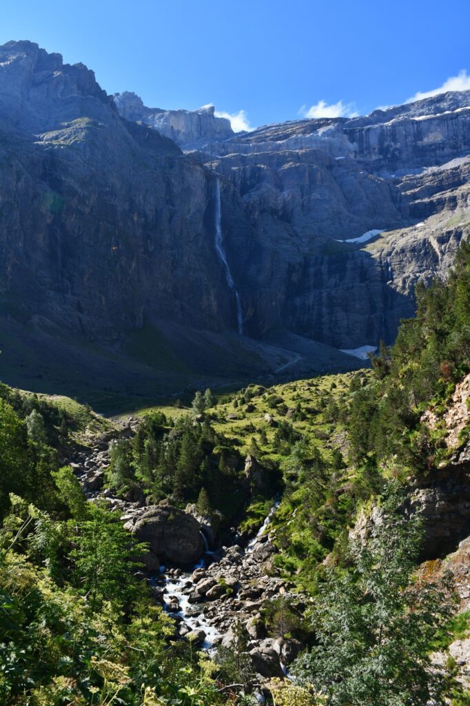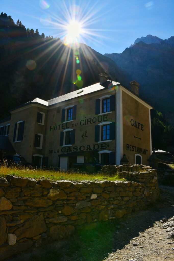 Quelques serpentins à remonter plus haut, nous voilà à l’Hôtellerie du Cirque qui nous permet d’avoir une superbe vue d’ensemble sur le Cirque de Gavarnie et son immense cascade de 423m de haut.
