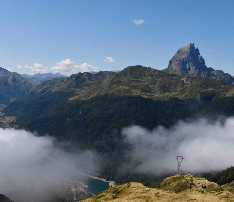 31 juillet 2025. Ce jour, nous poursuivons notre périple dans les Pyrénées au cœur de la vallée d’Ossau en se garant au niveau de la station de ski de Fabrèges. Il convient de réserver son billet sur le site du petit train d’Artouste avec un horaire à respecter. Le tarif est de 28€/adulte et gratuit pour les chiens pour l’ensemble télécabines/petit train. Ce dernier ne fonctionne que l’été puisque l’hiver, le domaine se transforme en station de ski.