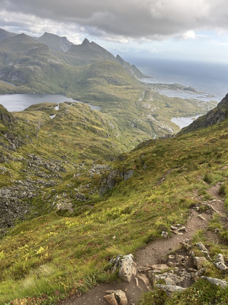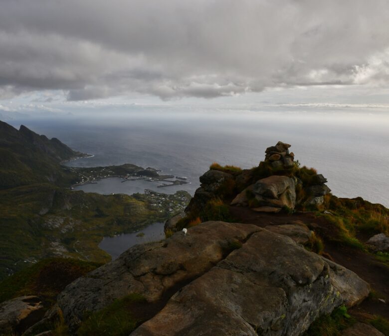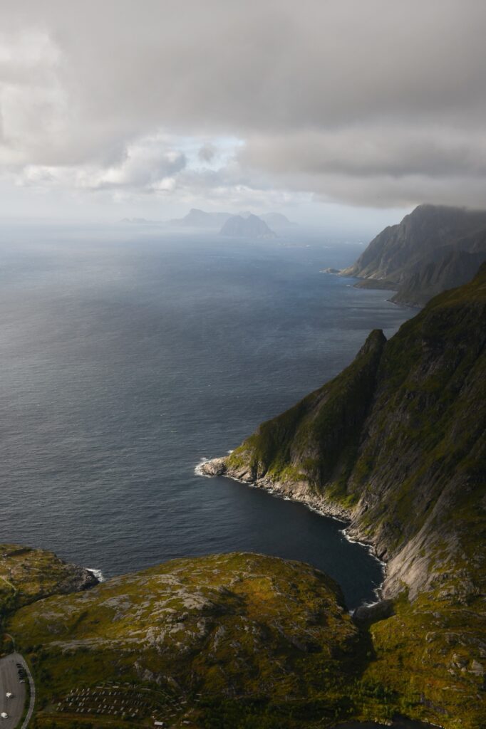5 septembre 2025. Ce jour, nous voilà directement à côté de la célèbre randonnée de Reinebringen qui fait la notoriété des Lofoten à elle-seule. On va aller trouver la petite rue de Storhaugen sur la commune de Sørvågen pour se garer sur un parking payant à 60NOK pour 4H soit environ 5€. Des toilettes payantes à 10NOK sont également présentes sur le parking.