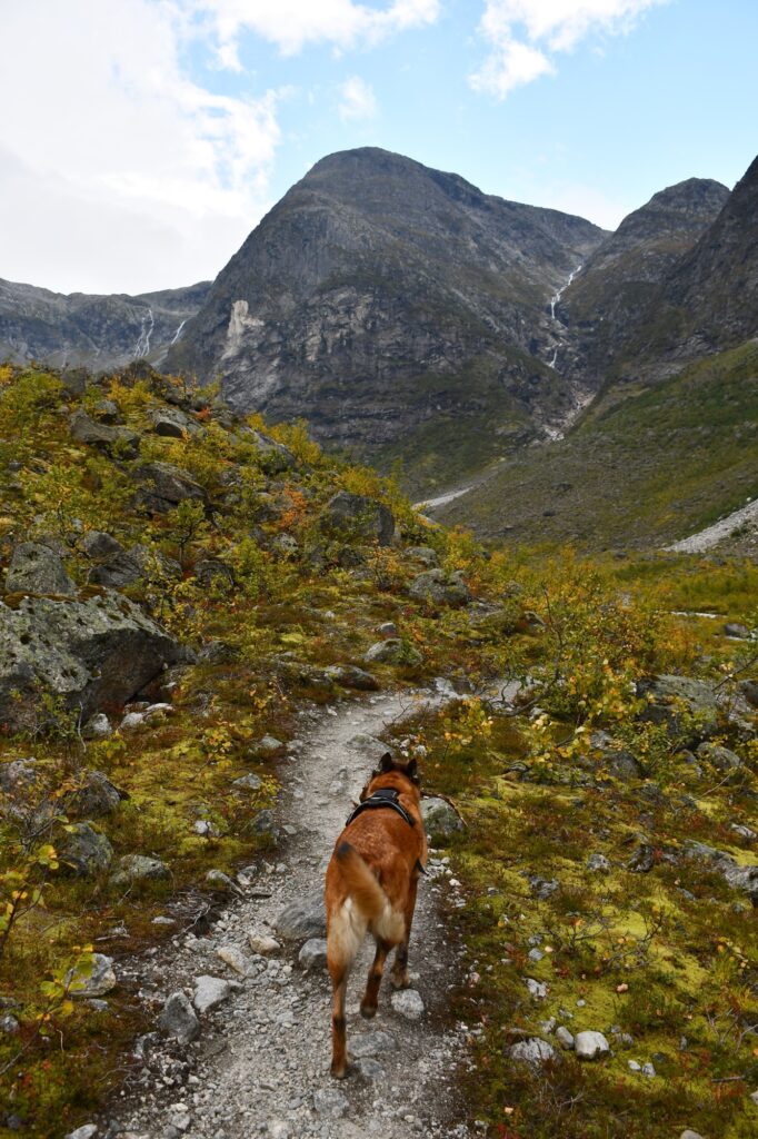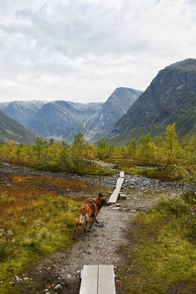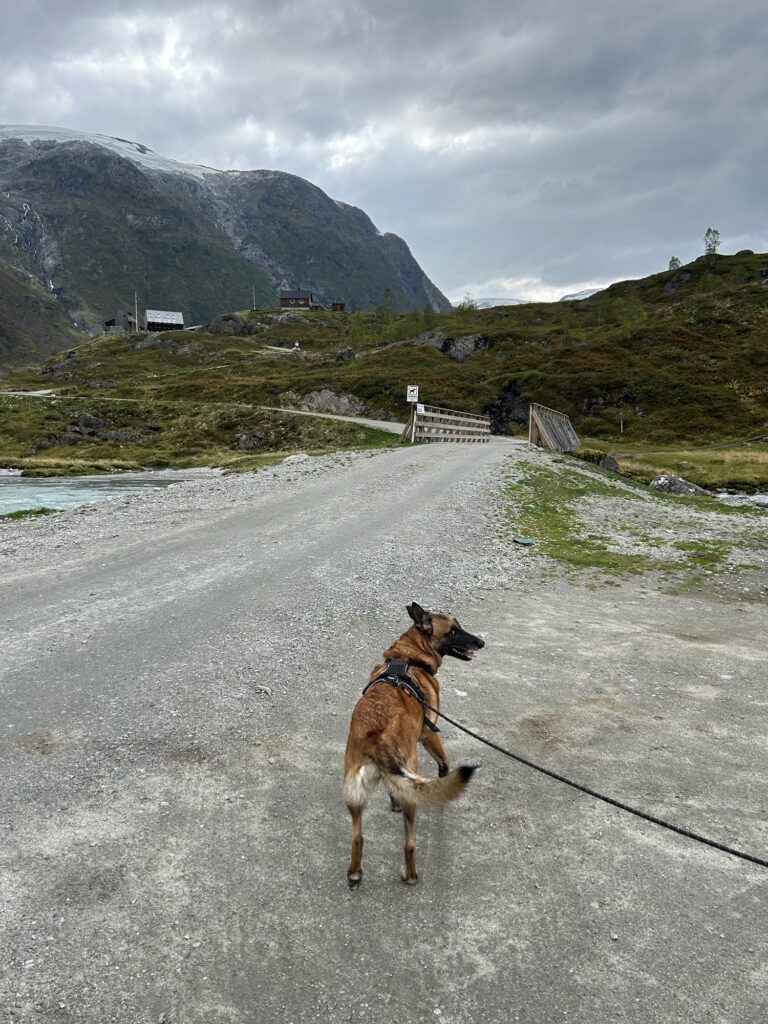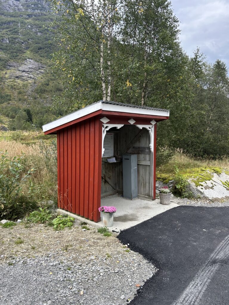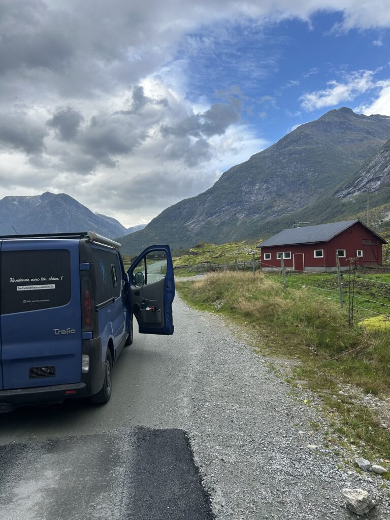 10 septembre 2025. Ce jour, nous partons en direction du parking de Tungestølen Turisthytte par le biais d’une route assez étroite avec une hauteur maximale de 3.9m pour les tunnels. Il faudra régler un péage 6km avant l’arrivée : 70NOK pour la journée qu’il conviendra de payer deux fois si vous souhaitez y passer la nuit avec votre véhicule. Il faut inscrire sa plaque d’immatriculation sur un carnet après le règlement par CB ou liquide.
