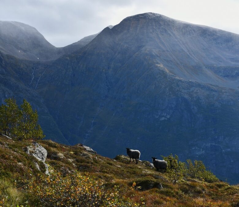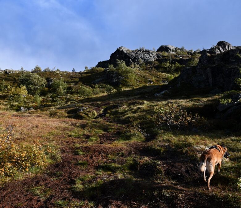 Le sommet de Klovane est très bien indiqué par un balisage rouge dès le départ de la randonnée. Après avoir pris à gauche des maisons, nous rentrons dans l’enclos des vaches et moutons avant de franchir plusieurs barrières pour le bétail.