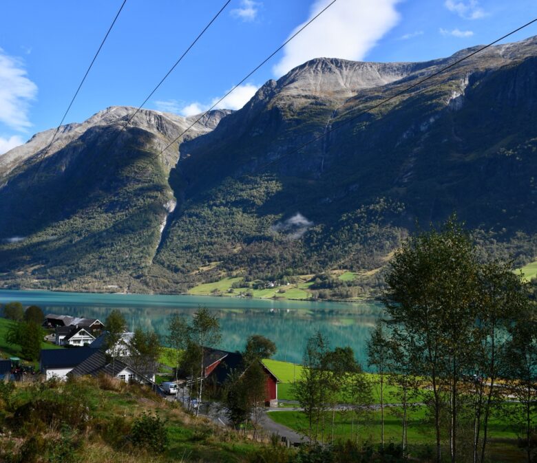 On va traverser le camping d’Oldevatnet pour aller se garer sur le parking de gauche avant les derniers corps de ferme. Ce dernier coûte 50NOK à régler via l’application Vipps – qui me semble-t-il est réservée aux norvégiens et suédois – ou en espèces.