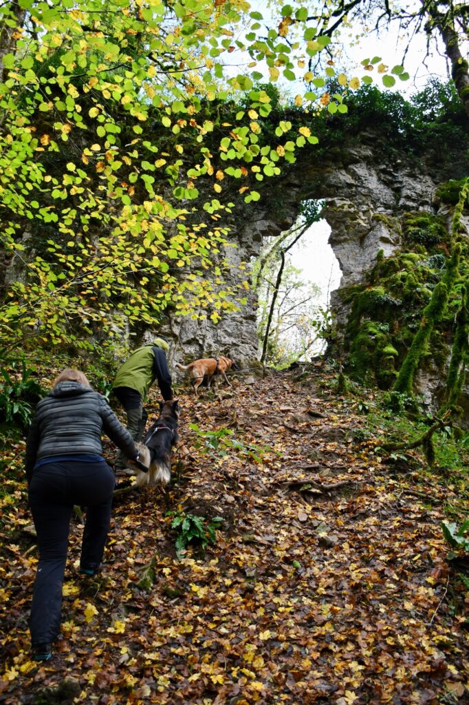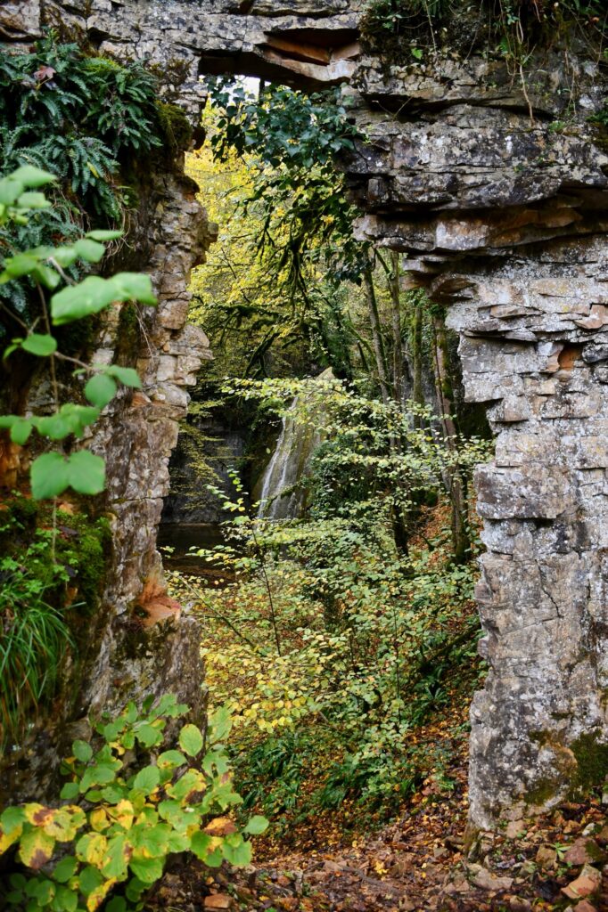 Après en avoir profité, on va s’orienter sur la porte de pierres que l’on aperçoit en haut avec une petite pente raide à remonter. La vue sur la cascade est très jolie !