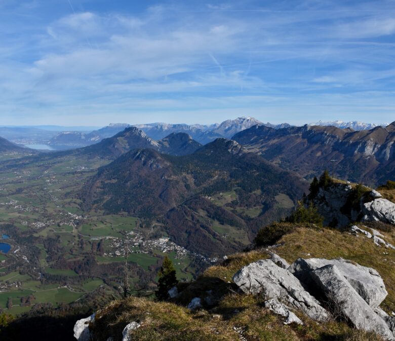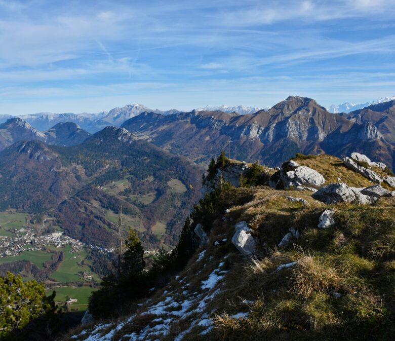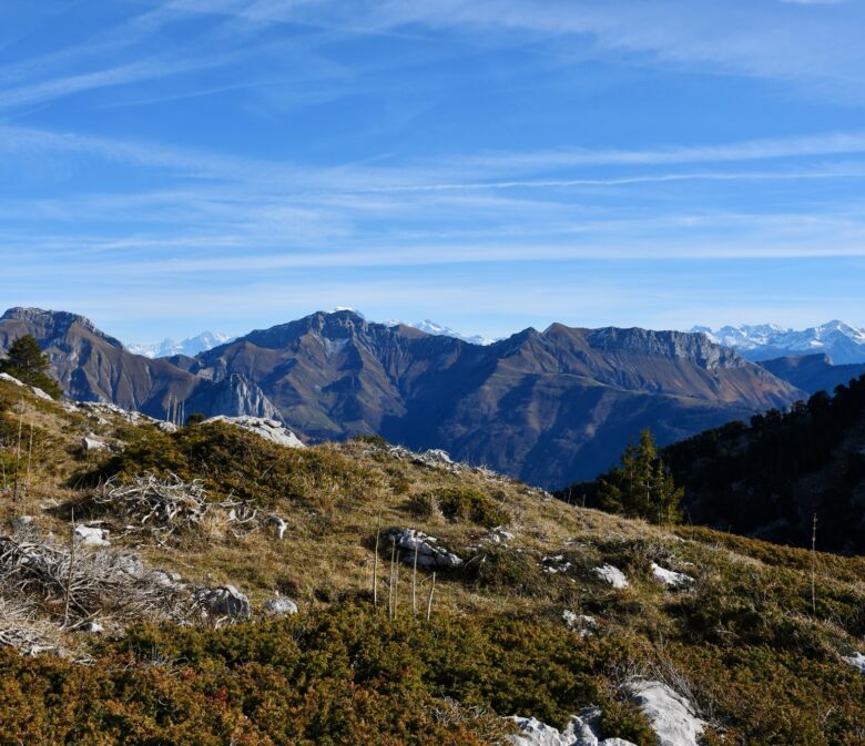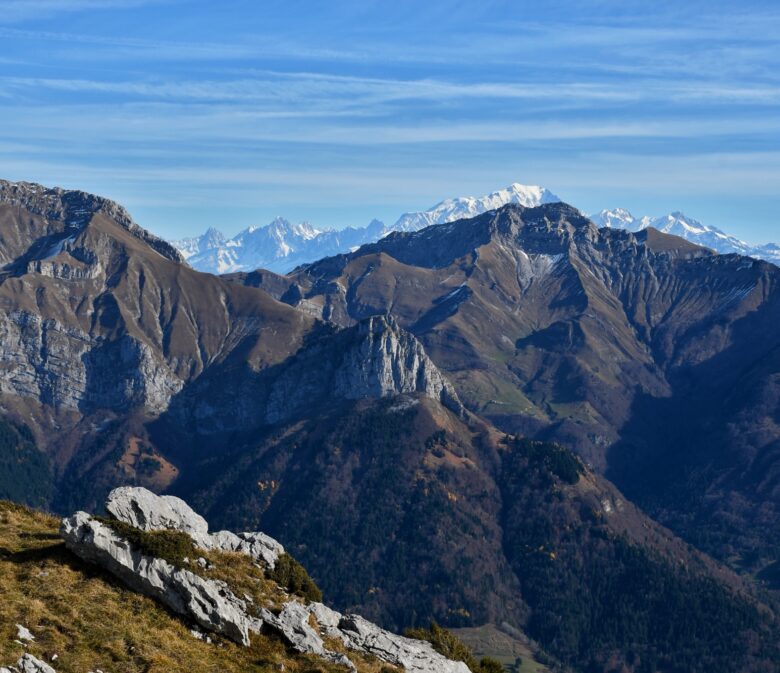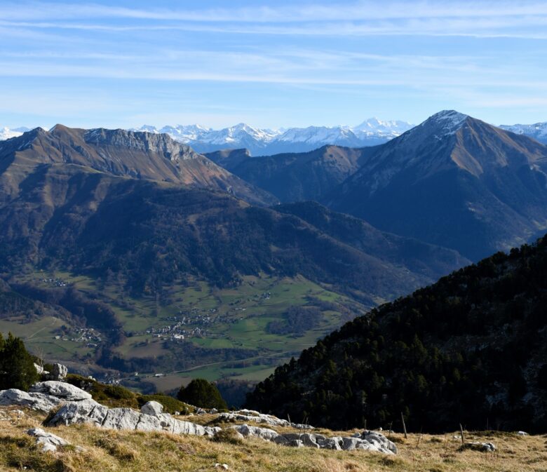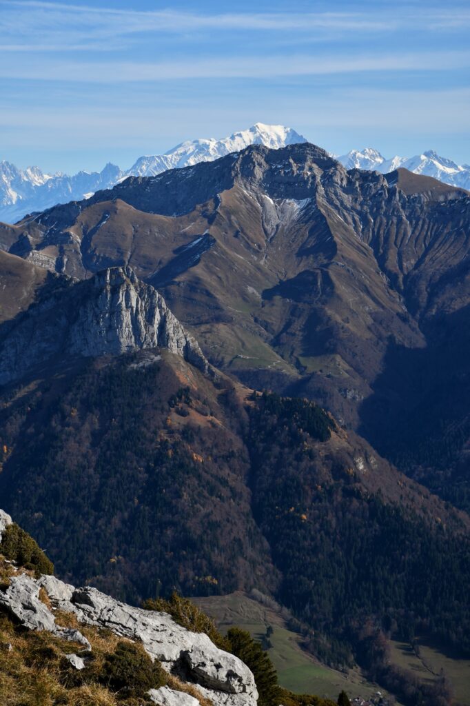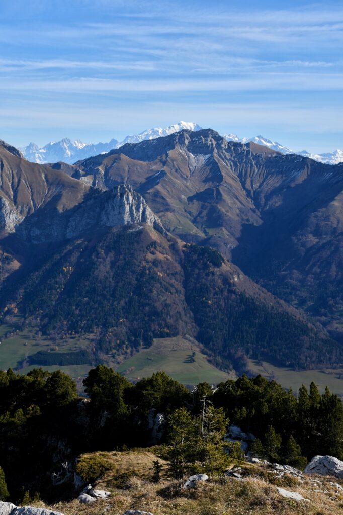 Au delà des Aravis, on a une très belle vue sur le massif du Mont-Blanc dans le fond pour ravir nos yeux !