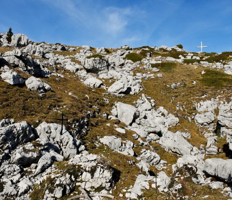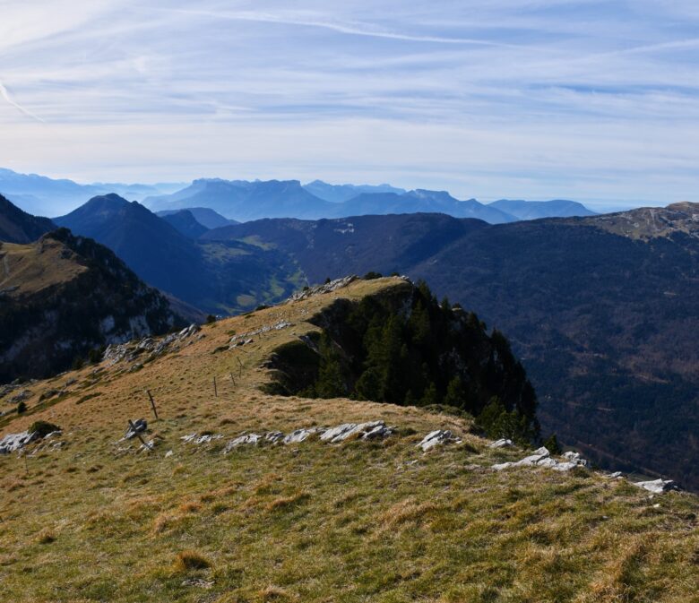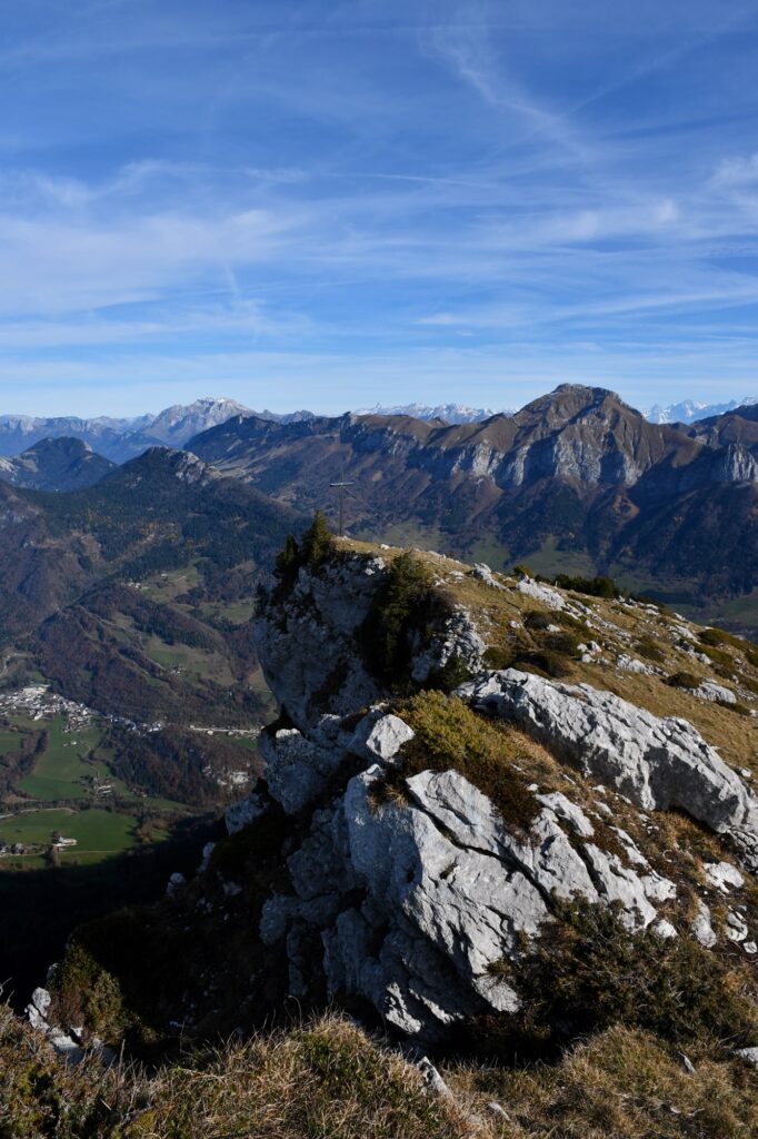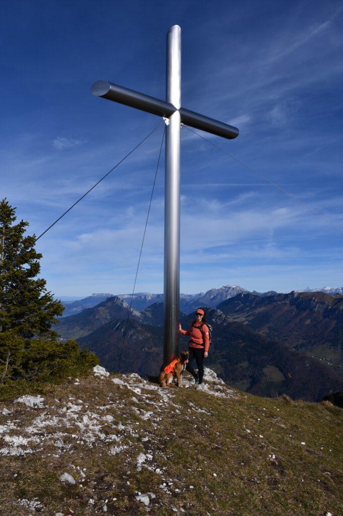 Sur notre gauche, un dernier effort pour arriver à l’immense Croix de Rossanaz qui surplombe le côté haut-savoyard des Bauges et un bout du lac d’Annecy !