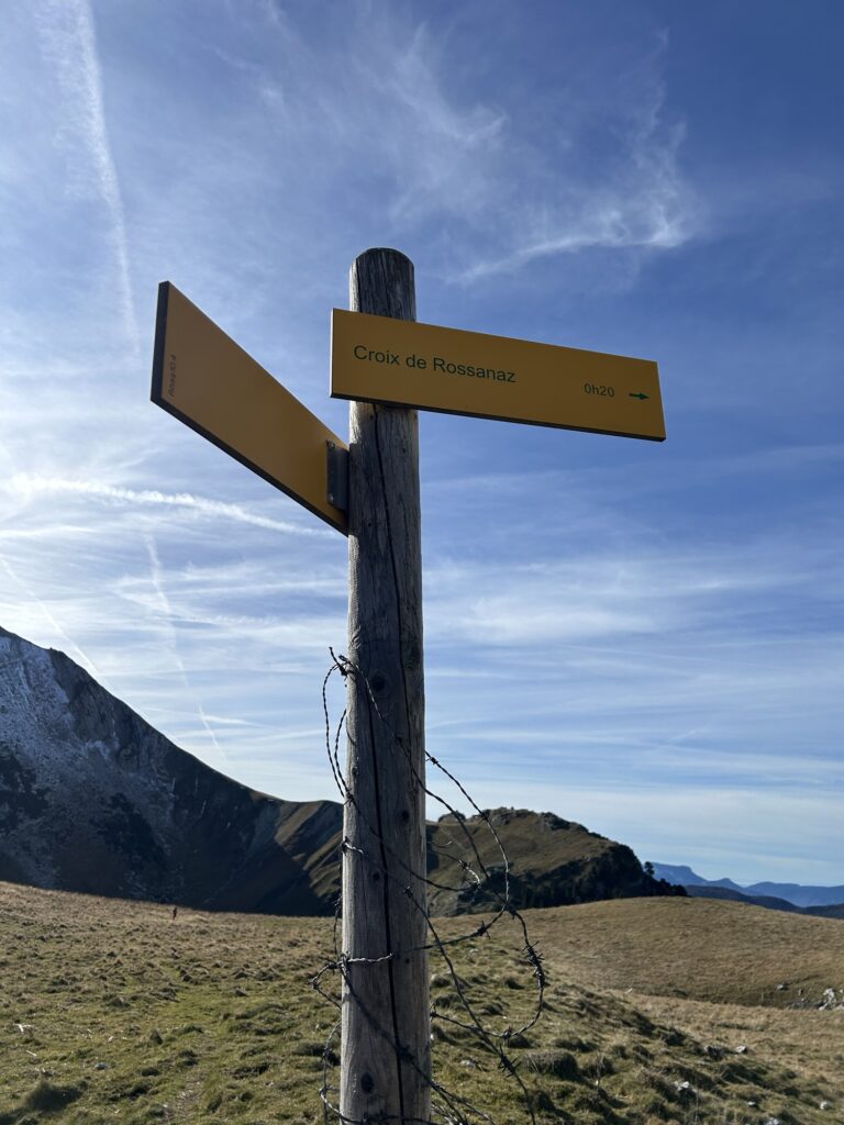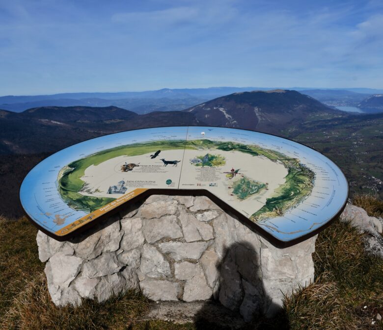 On continue de monter après la Croix pour arriver à la Dent de Rossanaz et sa petite table d’orientation.