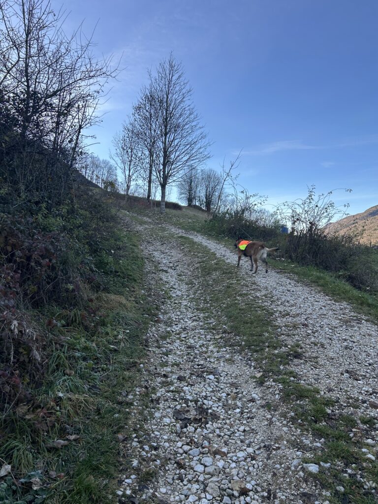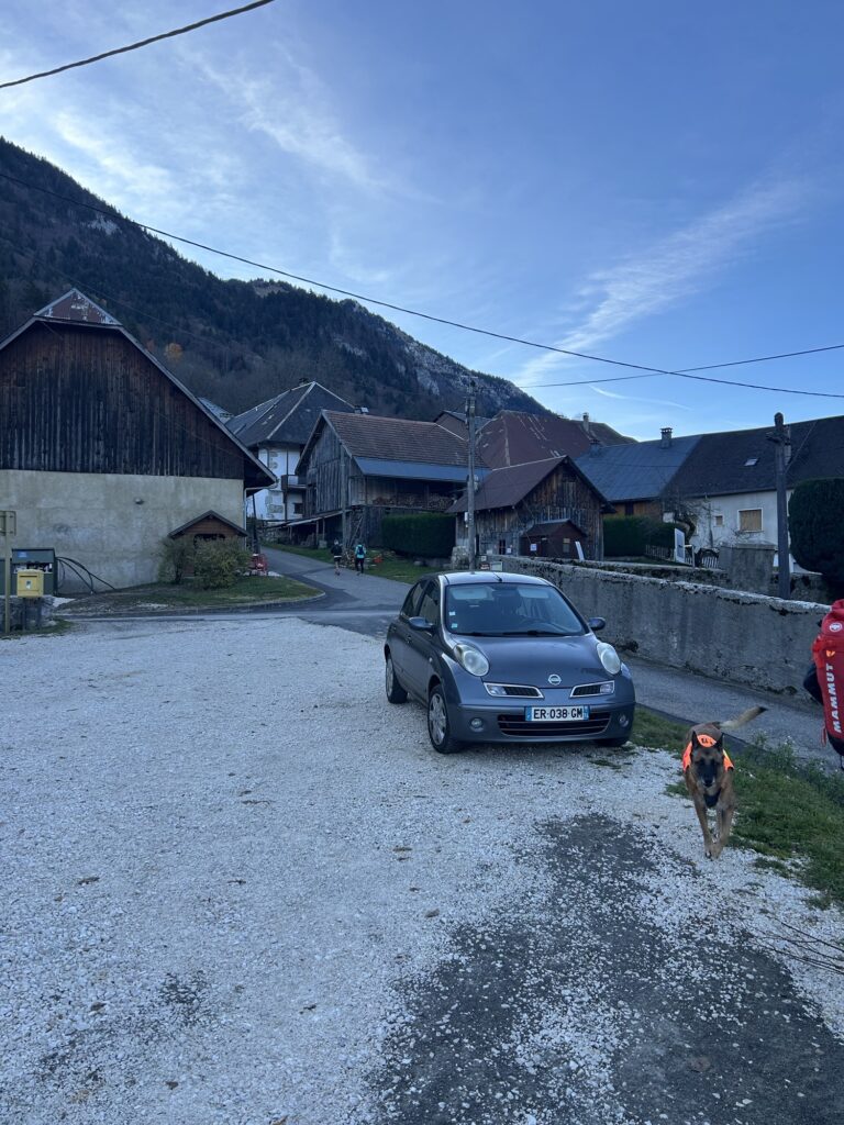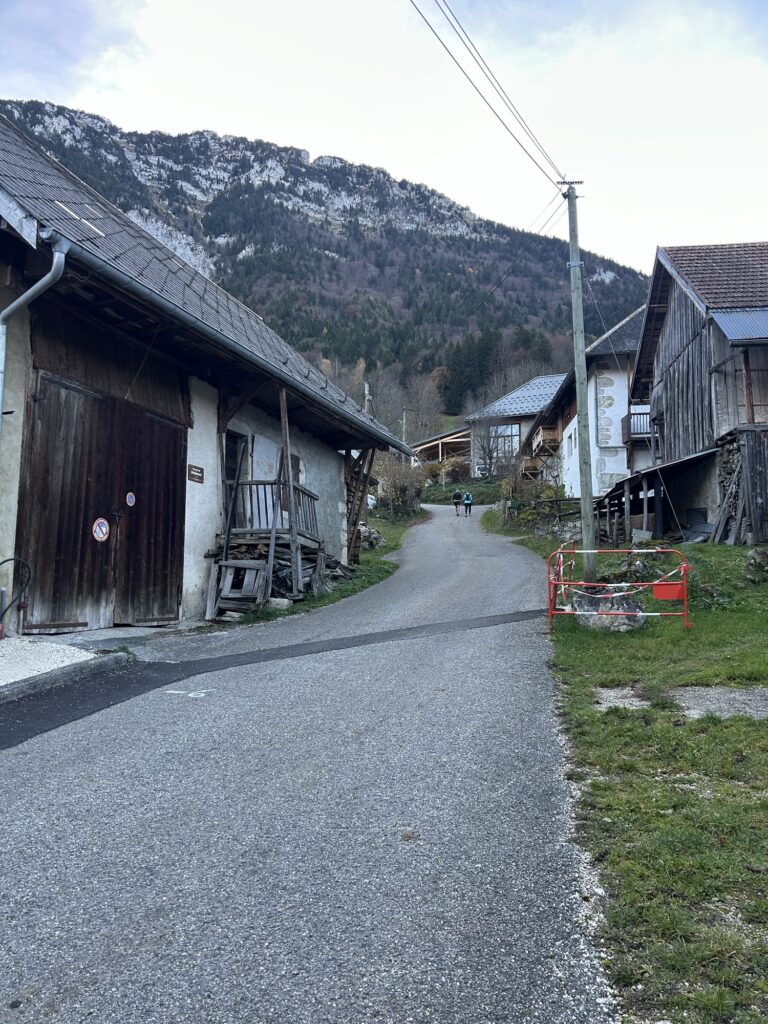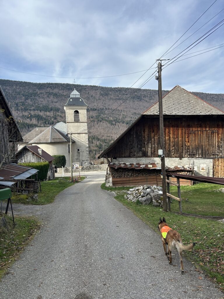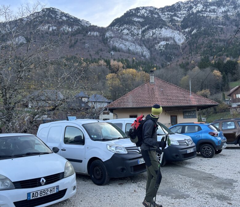 11 novembre 2025. Ce jour, nous nous garons sur le petit parking à côté de l’église et du cimetière de la commune d’Aillon-le-Vieux avant de traverser la route à pied pour prendre tout droit.