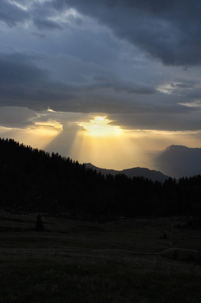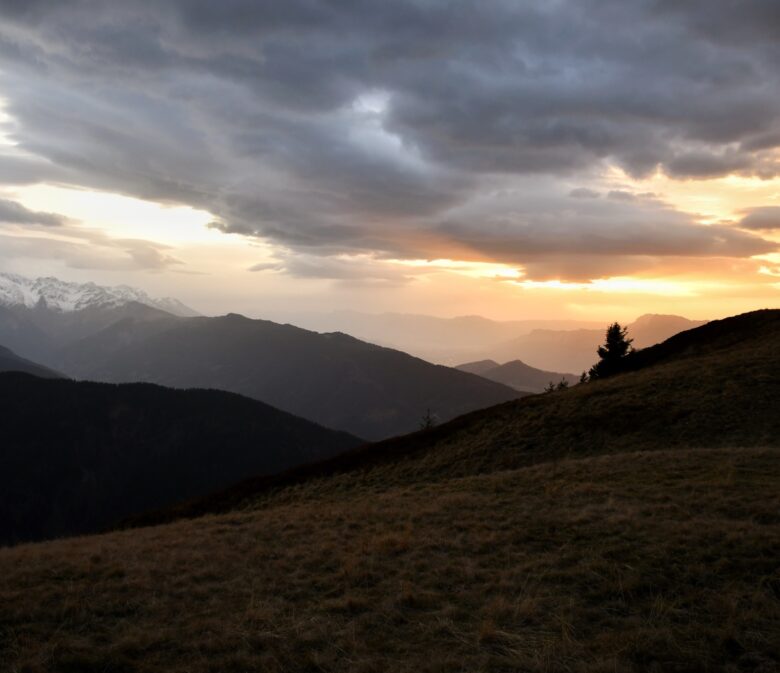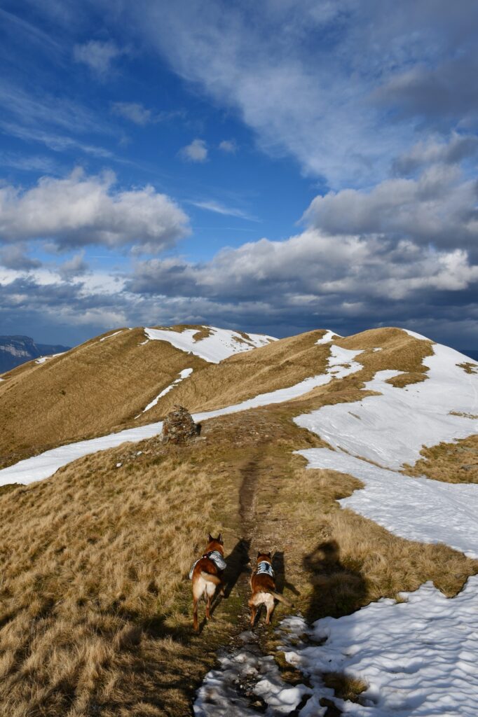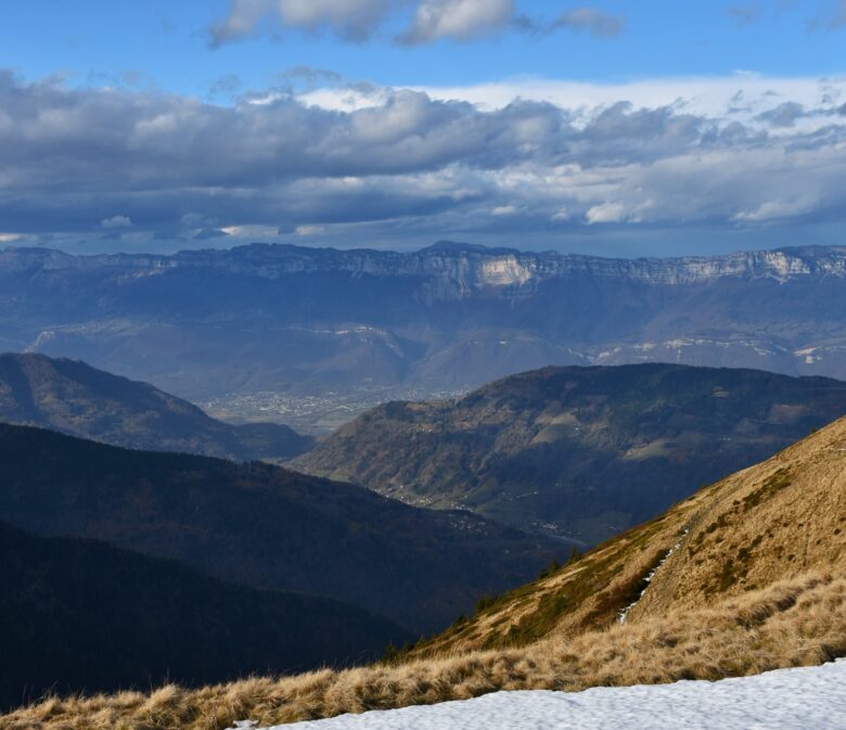 Après une belle nuit en montagne, nous reprenons la route en montant jusqu’au col de Claran. De là, plutôt que de prendre à nouveau le sentier à flanc de la veille, nous avons choisi de monter en direction du chemin des Crêtes et c’est sans regret, le point de vue sur les montagnes de Belledonne est superbe !