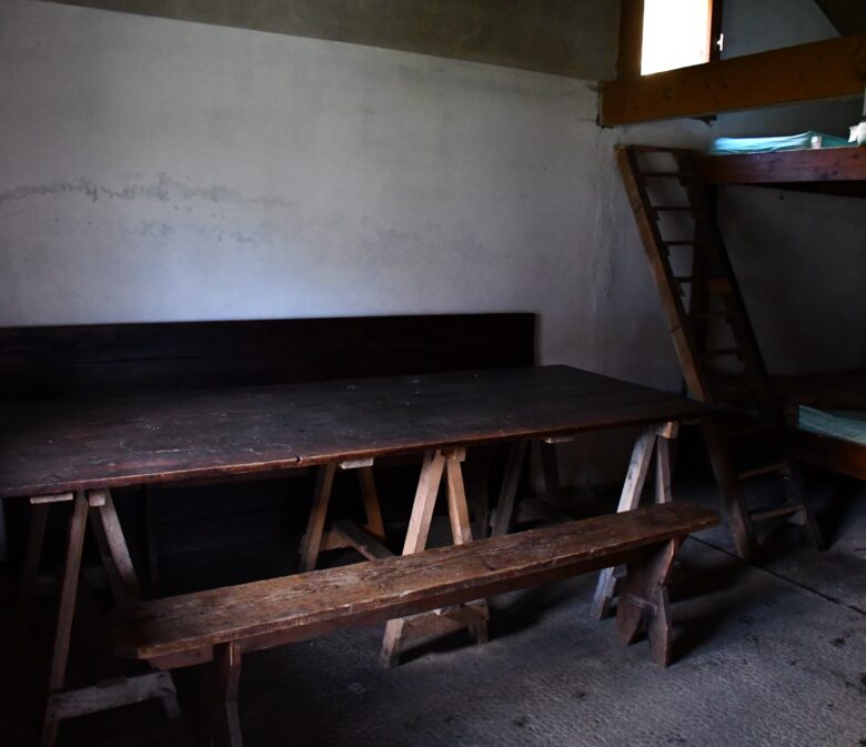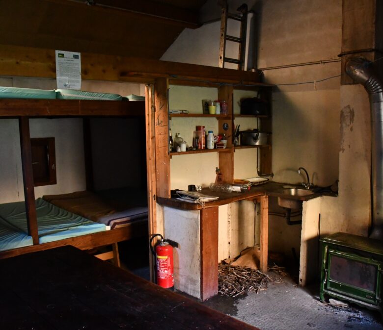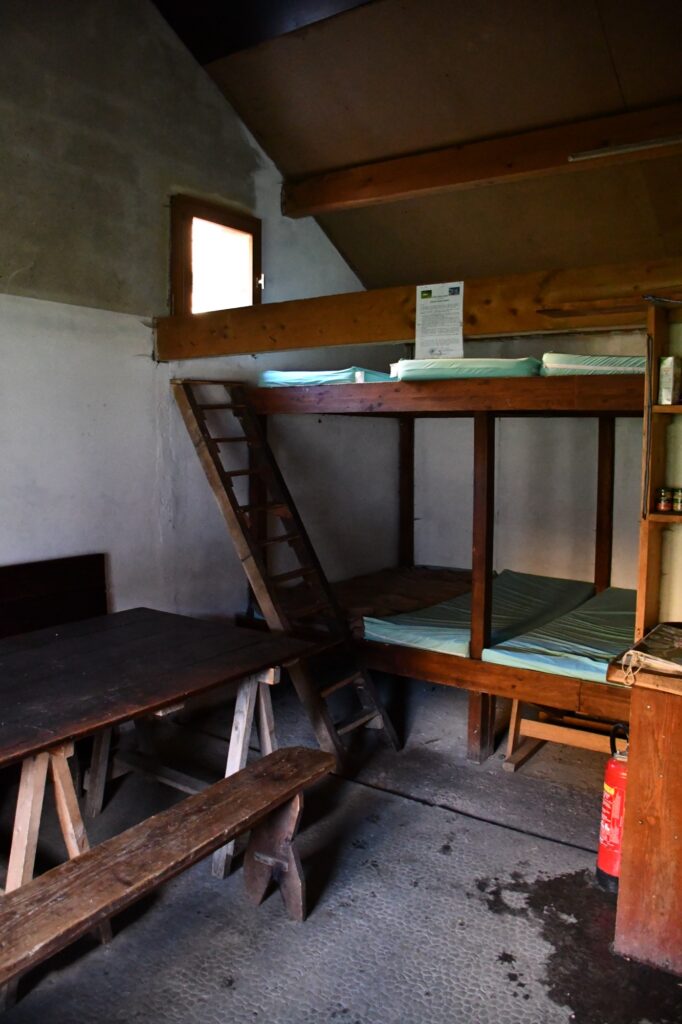 La cabane est luxueuse : une grande table, des bancs, un poêle, 10 matelas, des toilettes turques attenantes au refuge et du bois en quantité limitée mais des arbres aux alentours. Un point d’eau coule à proximité directe.