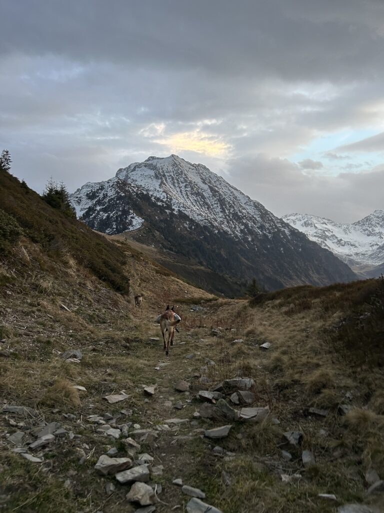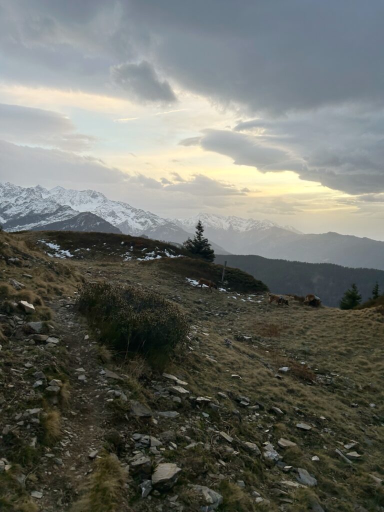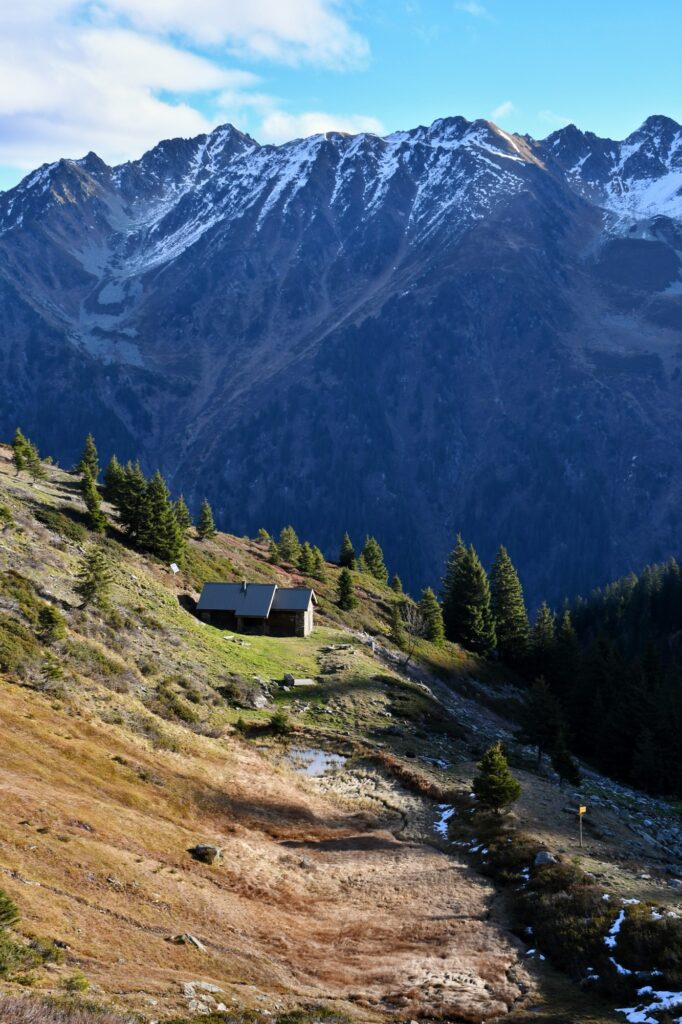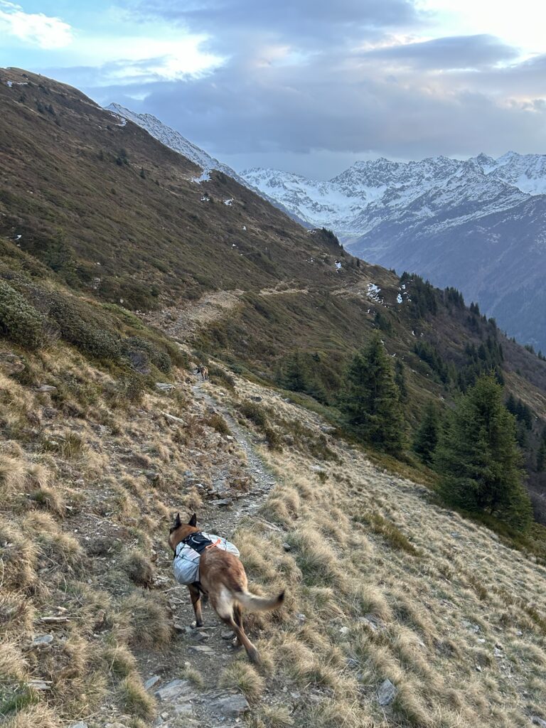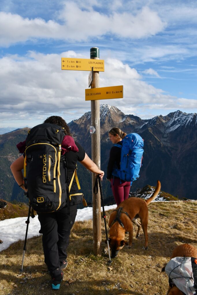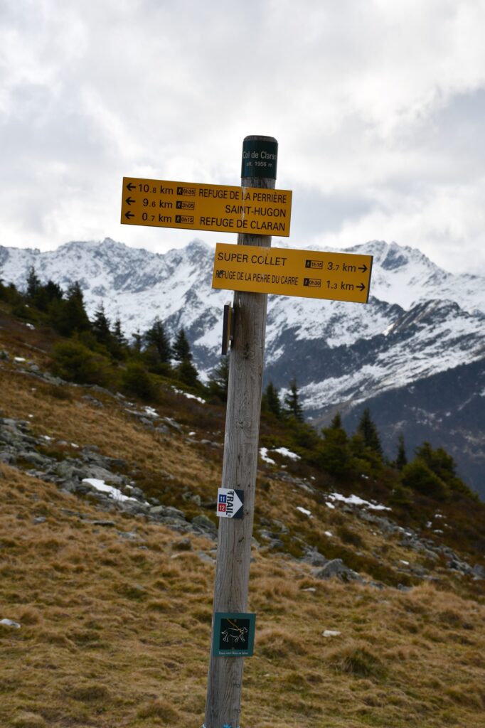 On a donc choisi l’option A en cette saison automnale en descendant légèrement sous la cabane pour tomber sur ce petit sentier. Celui-ci est assez long et nous mène au col de Claran !