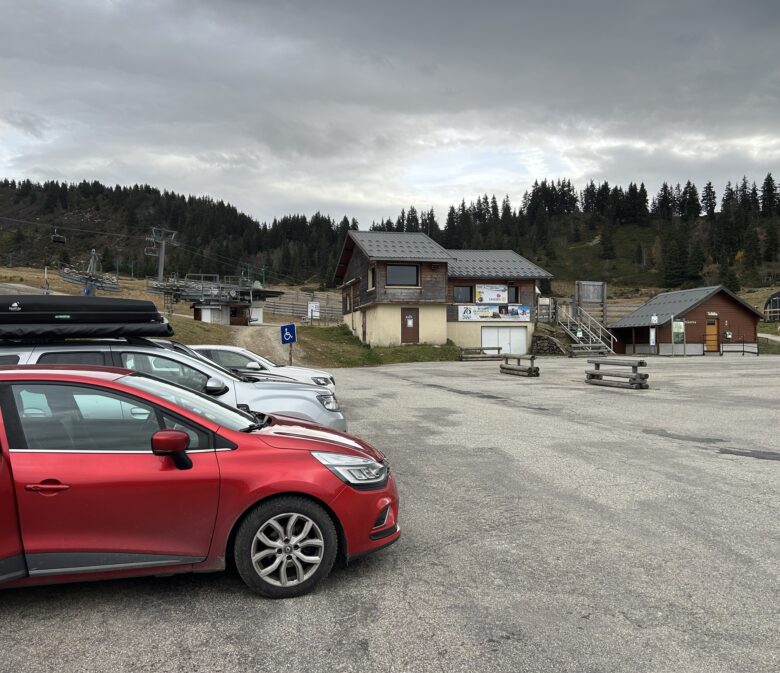 14 et 15 novembre 2025. Ce jour, nous nous garons sur le parking de Super Collet sur la commune du Collet d’Allevard. Il s’agit d’une station de ski. Attention donc : si vous souhaitez découvrir cette cabane avec votre chien notamment en hiver, il convient d’y aller en dehors des horaires ou période d’ouverture de la station de ski puisque l’on remonte plusieurs pistes.