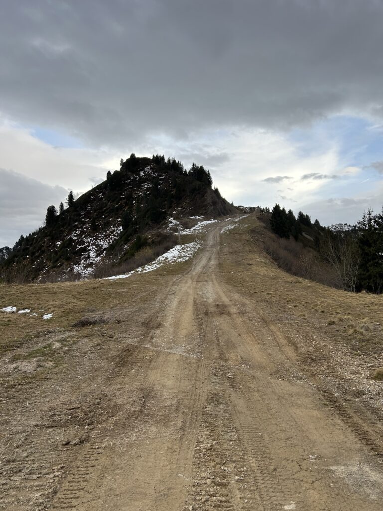 On va attaquer à droite du télésiège du Grand Collet pour remonter la route carrossable/piste jusqu’en haut. Cela nous amène à un replat avant de prendre à droite sur la piste bien raide. Après un second replat, on arrive enfin à une petite cabane sur notre droite.