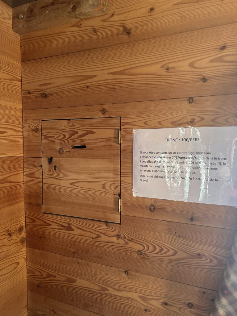 - Nuit en refuge non gardé avec 10€ à régler sur place – attention aux dates d’ouverture du refuge pour venir avec un chien