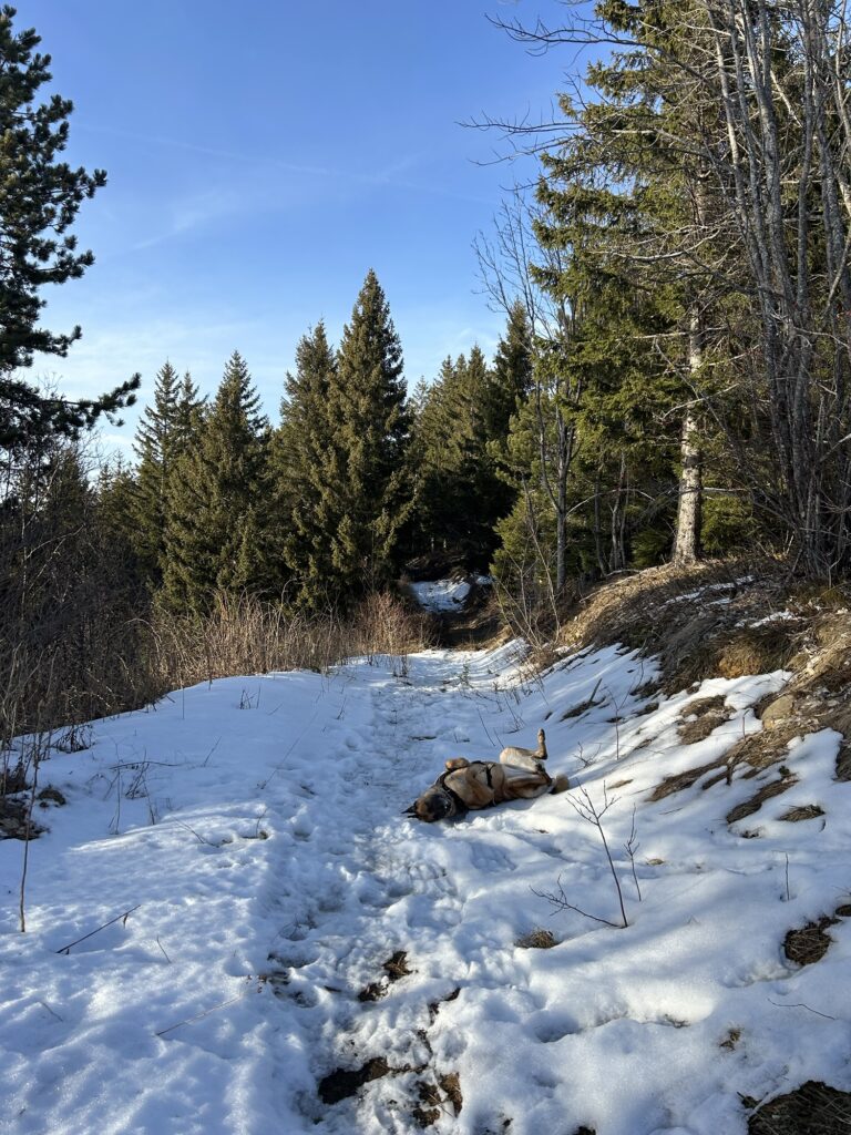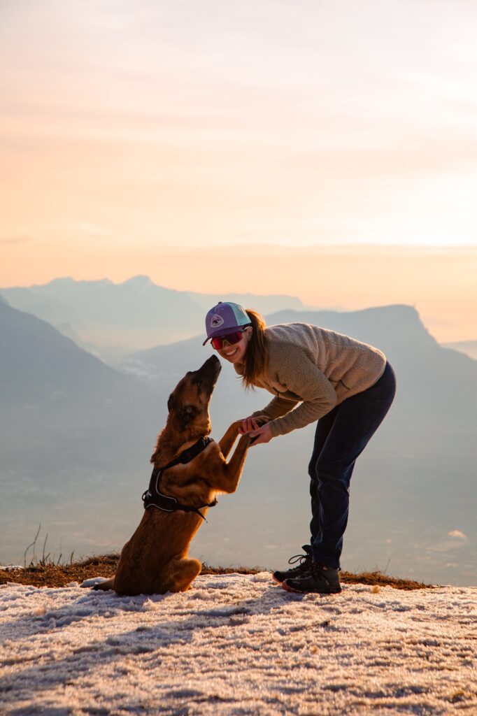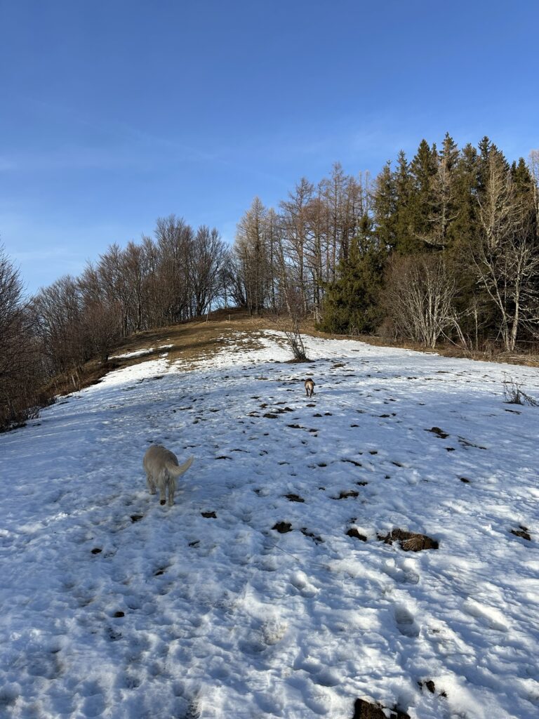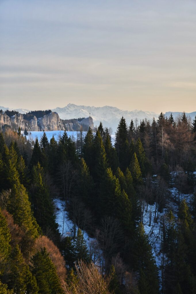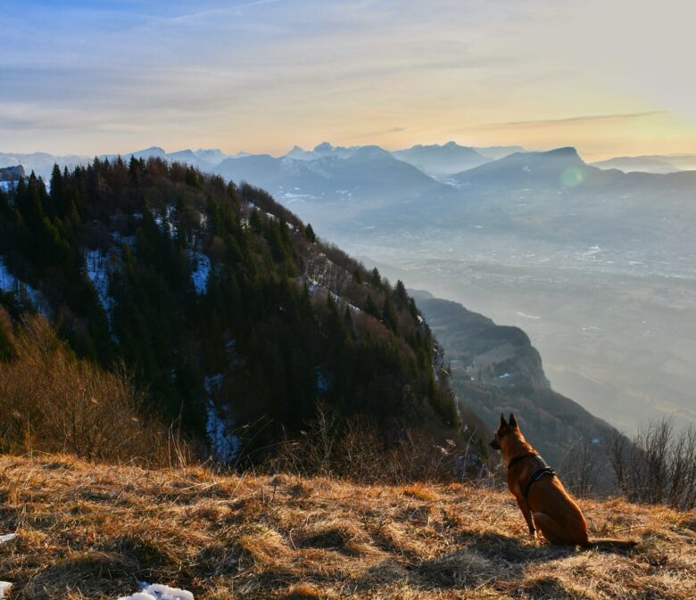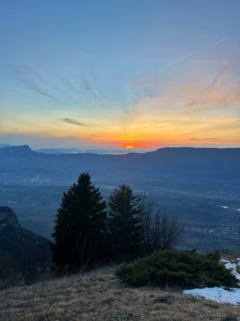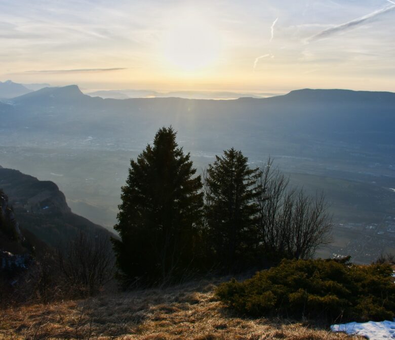 De là, il suffit de remonter sur le sentier bien raide en forêt – rassurez-vous ça ne dure pas longtemps – avant d’arriver sur un replat qui mène sur un premier joli plateau avec une vue sur les Bauges d’un côté et la Chartreuse de l’autre !