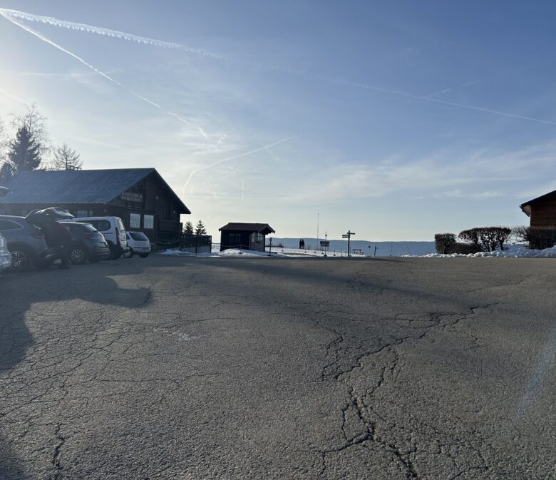 18 janvier 2026. Ce jour, nous sommes sur les hauteurs de la Féclaz aux Déserts sur les plateaux du Revard. Nous allons chercher le parking du Sire sur lequel nous nous garons face aux petites remontées mécaniques.