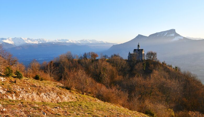 110D+ et 2.9km pour une petite balade face aux sommets des massifs de la Chartreuse et des Bauges avec une belle chapelle à découvrir.